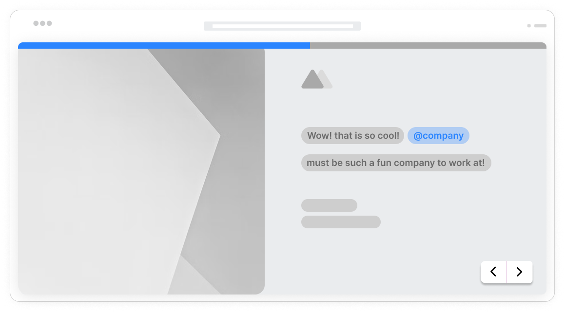 Personalize both the questions you ask and the context you provide. 'Tell us more about your role at {{company}}' or 'Based on your interest in {{product}}, we recommend...' makes every step feel tailored.