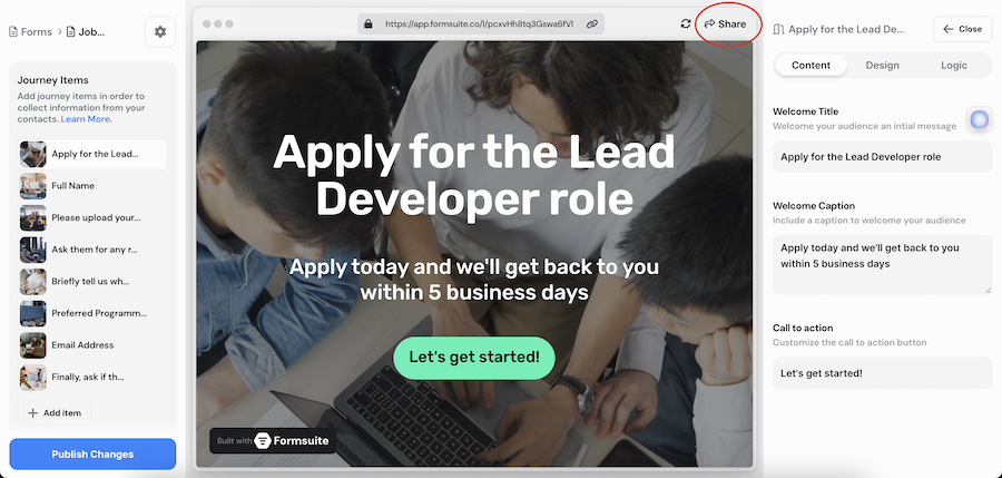 Sharing your form is a key part of your form's journey. What's the point of making a form if no one is going to see it?