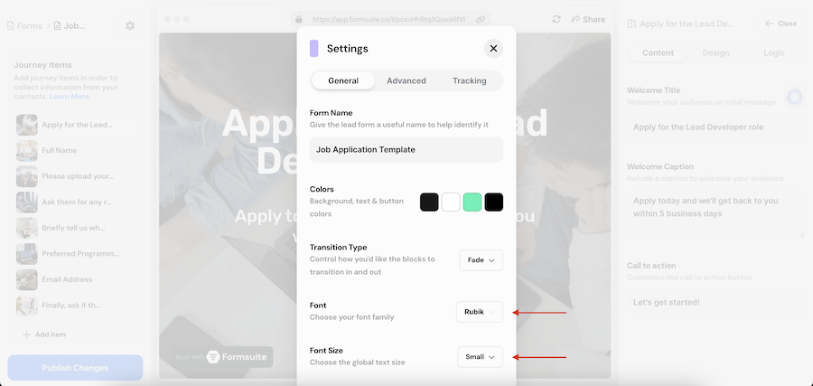 After you make these updates, you can close the modal and see your changes in the form preview.