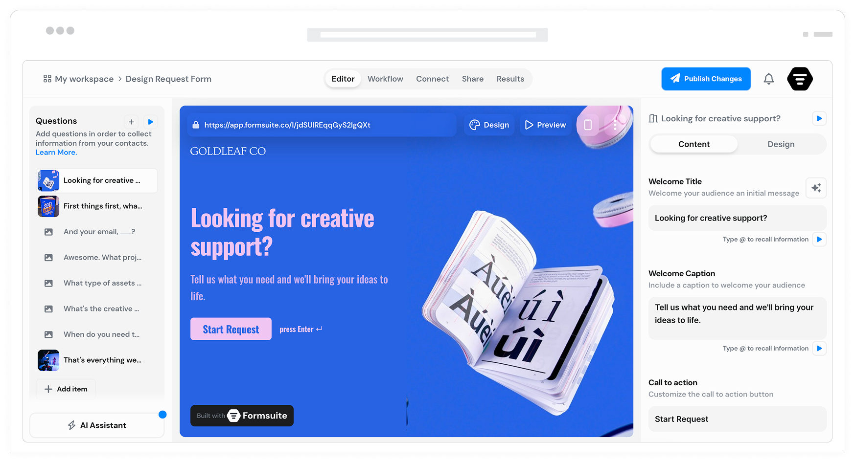Collect logos, images, brand guidelines, and reference materials. Clients upload assets directly in brief forms. Everything in one place from the start.