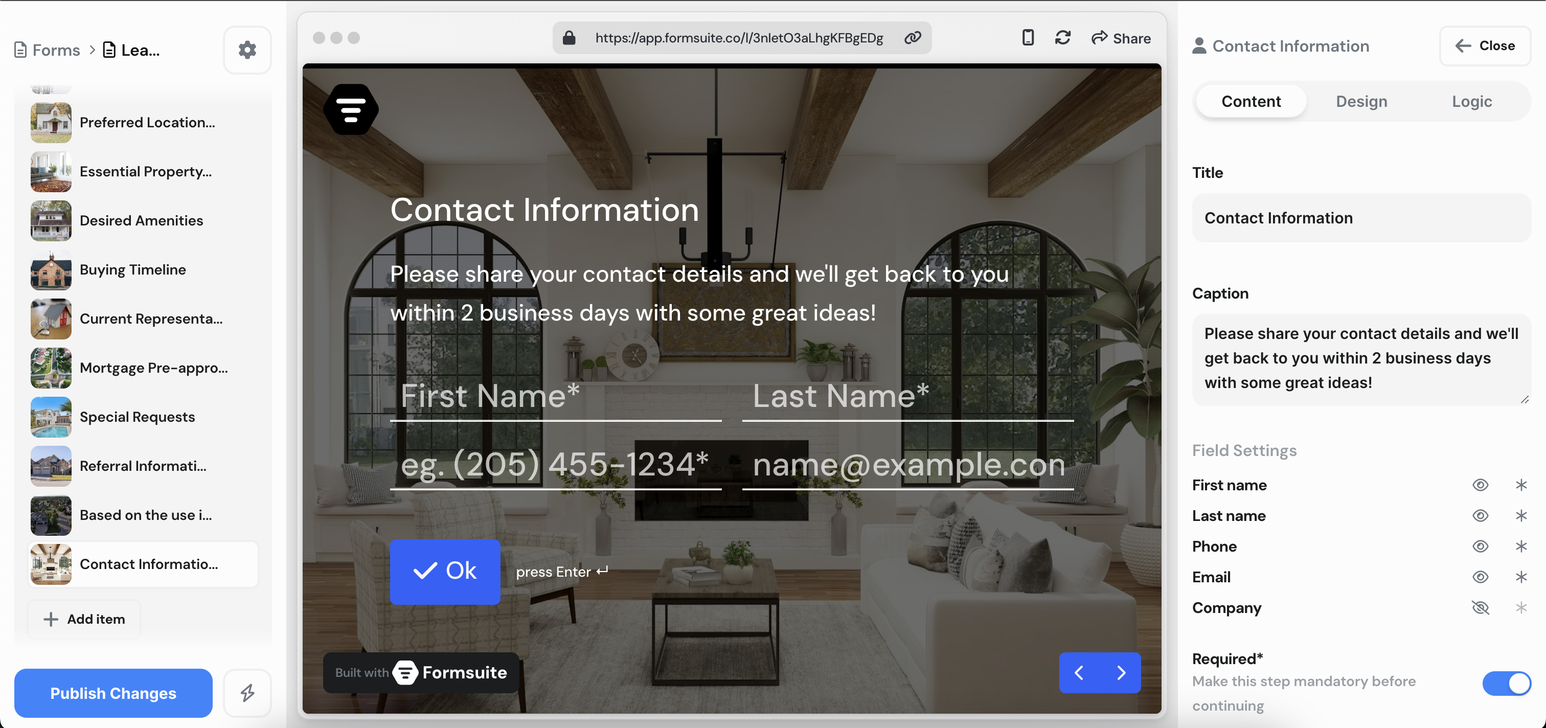Formsuite equips you with everything necessary to elevate your property listings and client interactions. Benefit from AI-driven insights, elegant forms, and more, all designed to streamline your real estate processes.