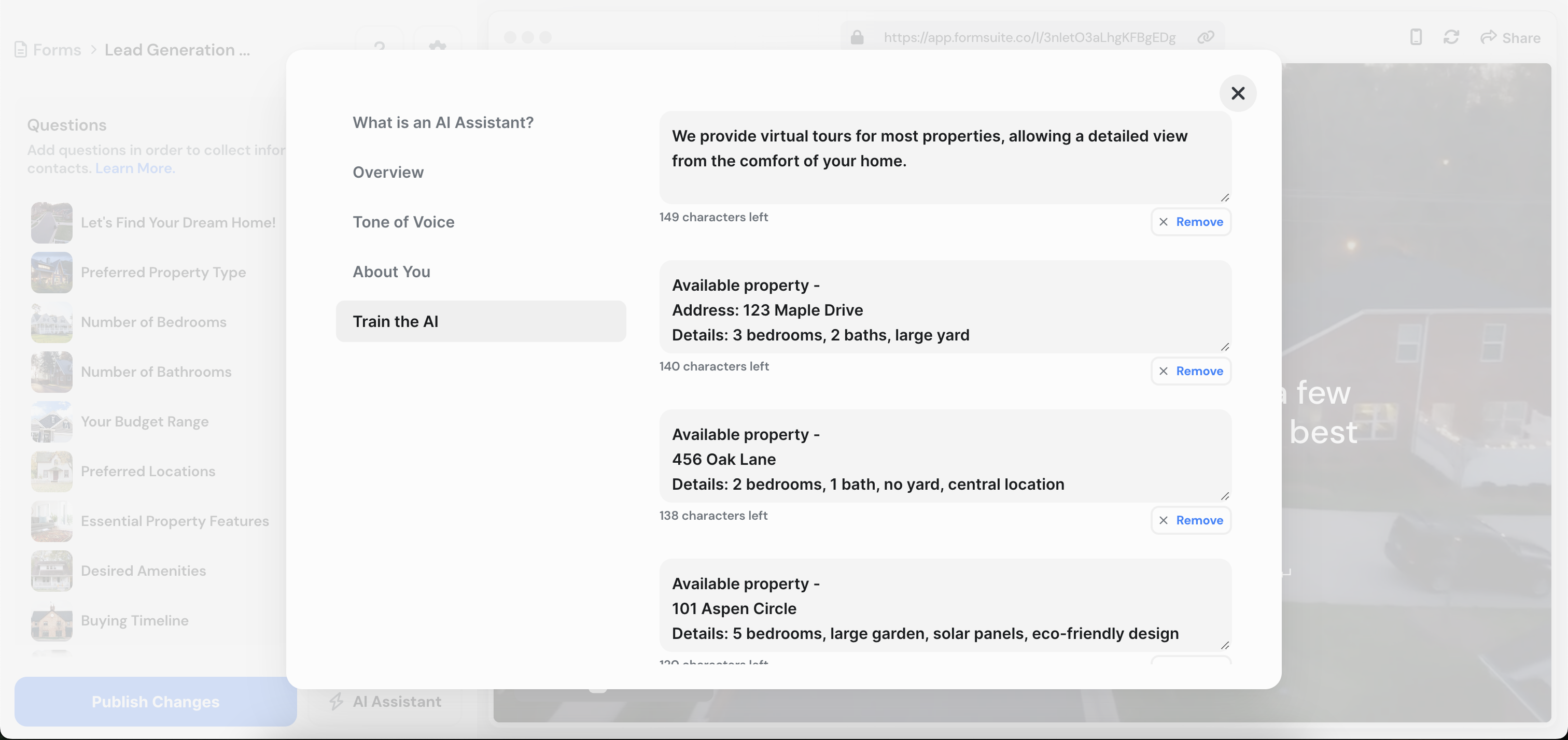 Equip your AI assistant with knowledge about your listings to suggest the ideal properties to leads and answer their questions accurately in real time.